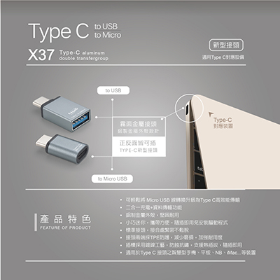 .轉接規格:USB母座轉Type C公頭*1、Micro USB母座轉 Type C公頭*1