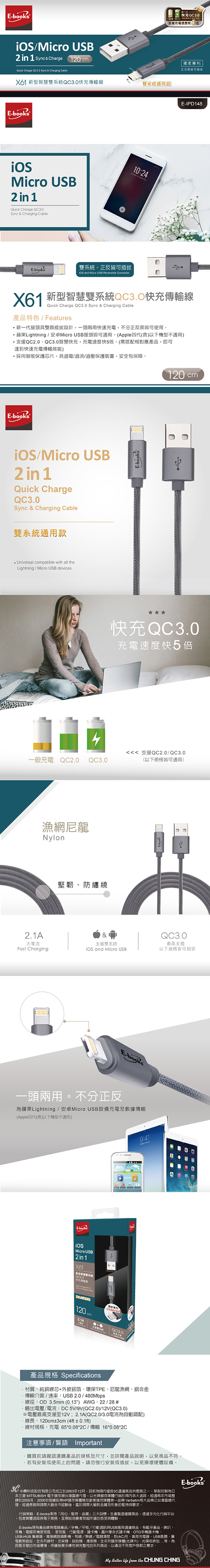 .線材規格:充電 65*0.08*2C / 傳輸 16*0.08*2C
