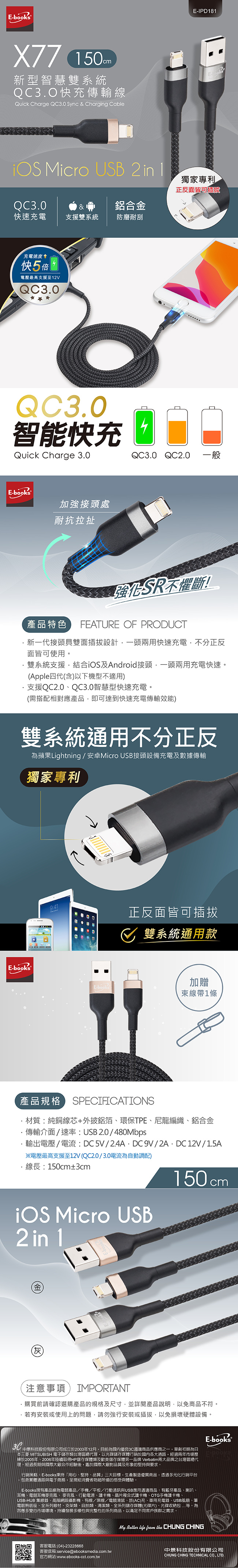 .新一代接頭具雙面插拔設計,一頭兩用快速充電,不分正反面皆可使用。