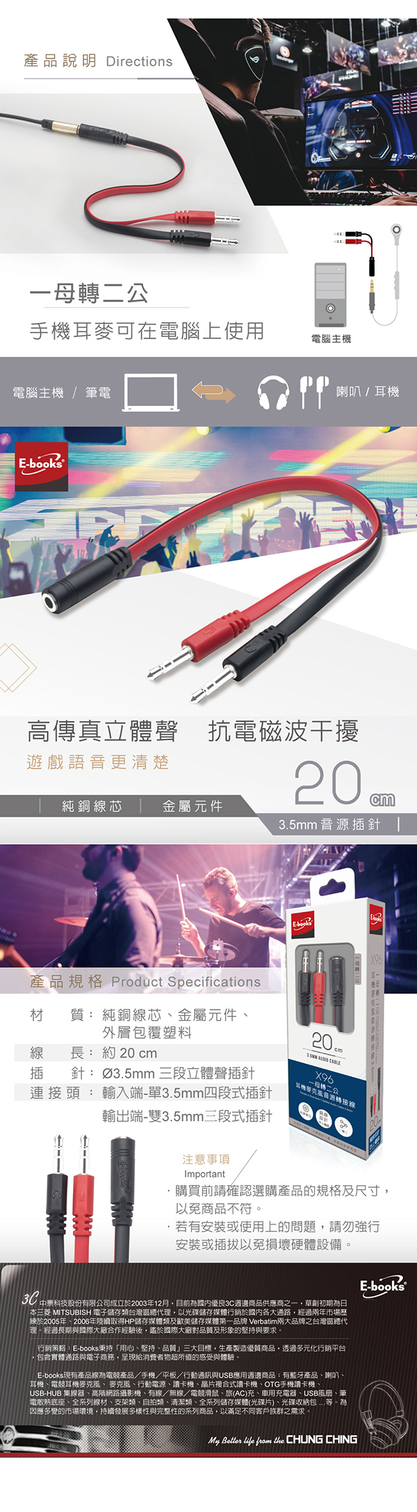 ‧ 連接頭:輸入端-單3.5mm四段式插孔