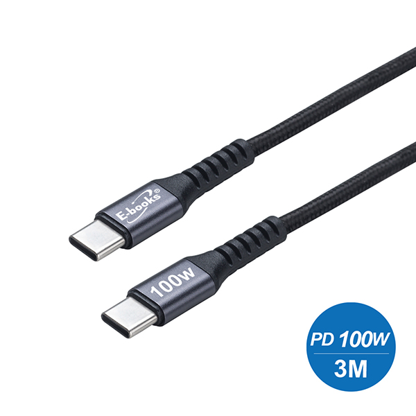 E-books XA45 鋁製Type C to C 100W極速充電傳輸線-3M