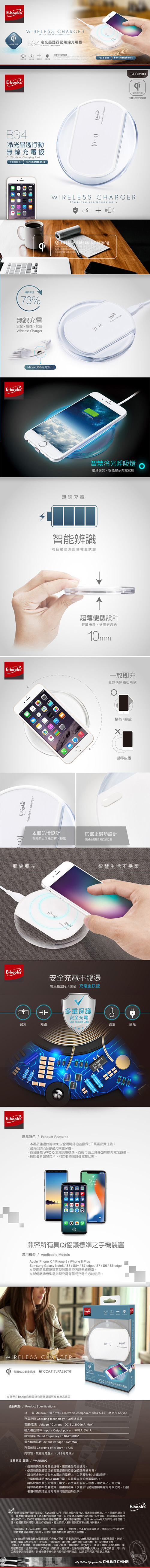 · 符合國際 WPC Qi無線充電標準,支援市面上具備Qi無線充電之設備。
