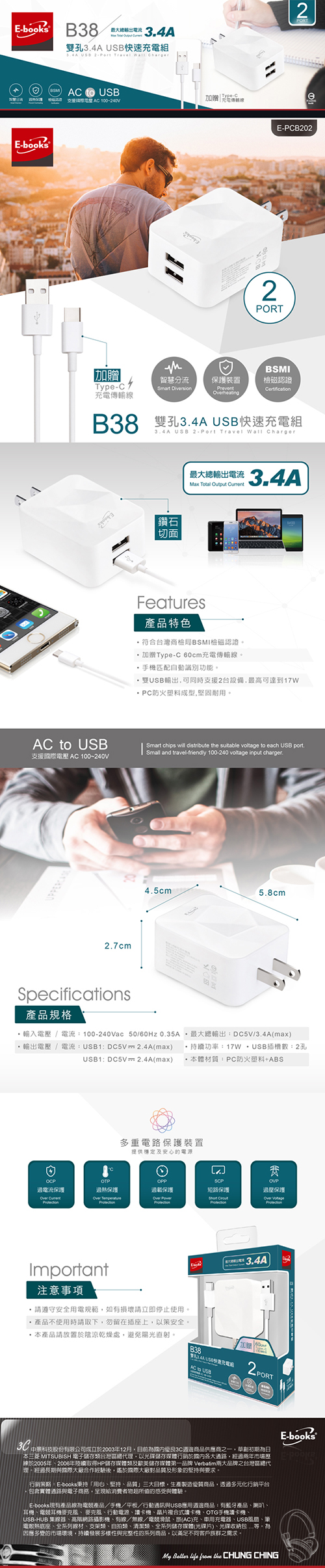 · 雙USB輸出,可同時支援2台設備,最高可達到17W。