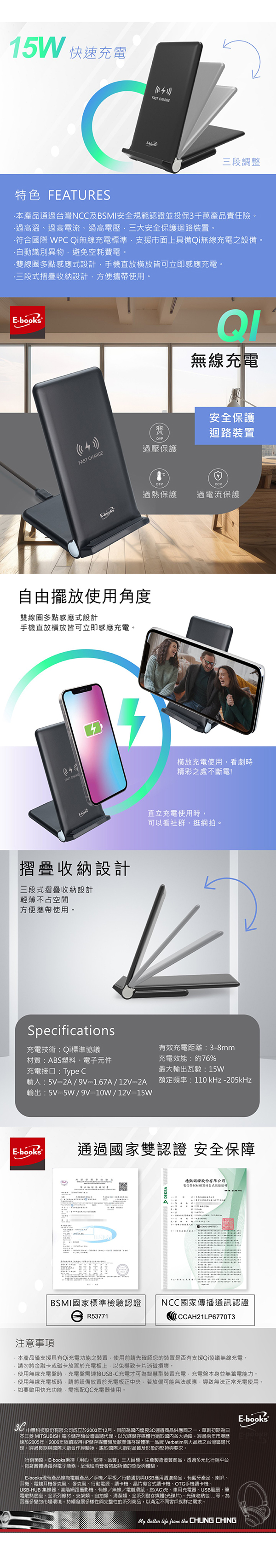 .符合國際 WPC Qi無線充電標準,支援市面上具備Qi無線充電之設備。