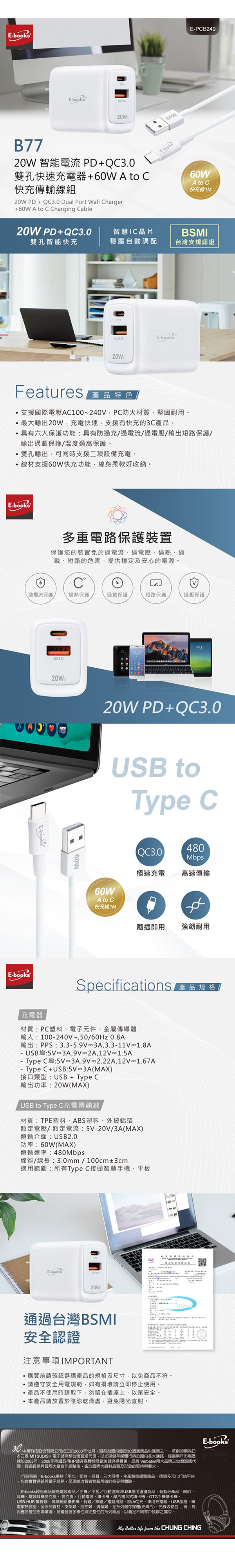 .BSMI證號:R53771,驗證型號:E-PCB249