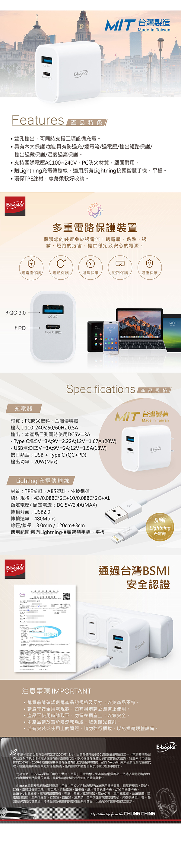 • 贈Lightning充電傳輸線,適用所有Lightning接頭智慧手機、平板。