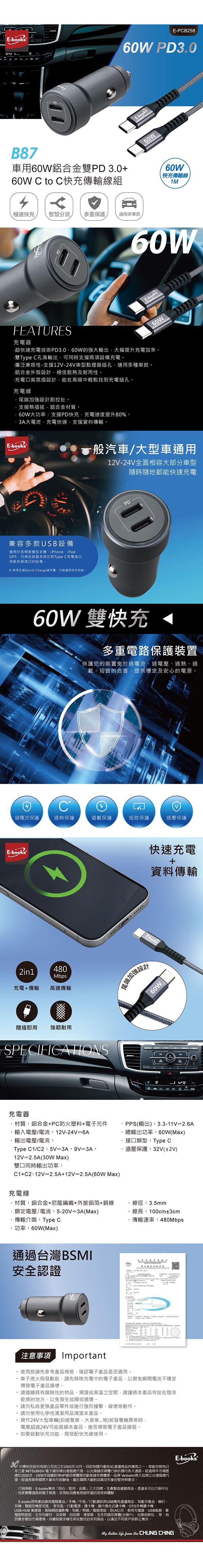 充電器: 超快速充電技術PD3.0,60W的強大輸出,大幅提升充電效率。