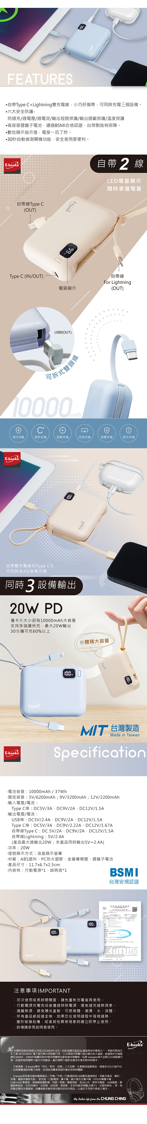 •高容量鋰離子電池,通過BSMI合格認證,台灣製造有保障。