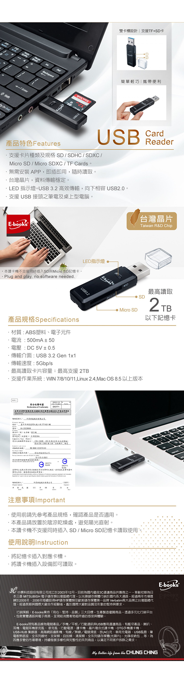 .支援卡片種類及規格 SD / SDHC / SDXC / Micro SD / Micro SDXC / TF Cards。