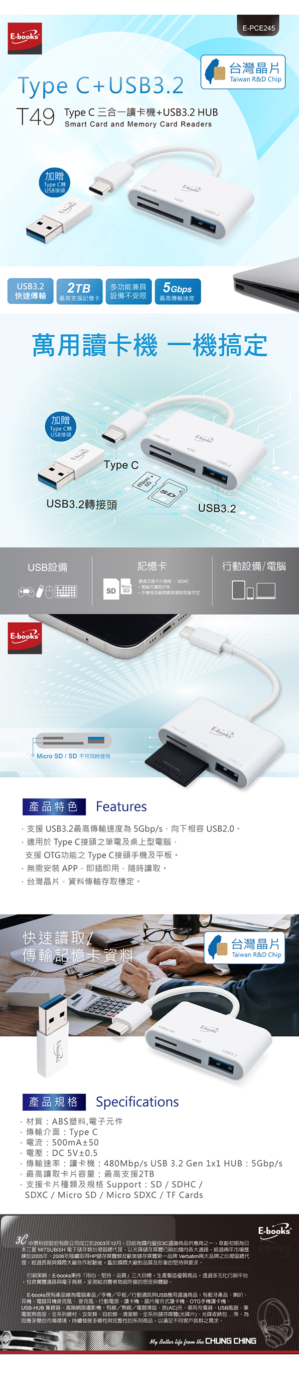 .支援卡片種類及規格 Support:SD / SDHC / SDXC / Micro SD / Micro SDXC / TF Cards