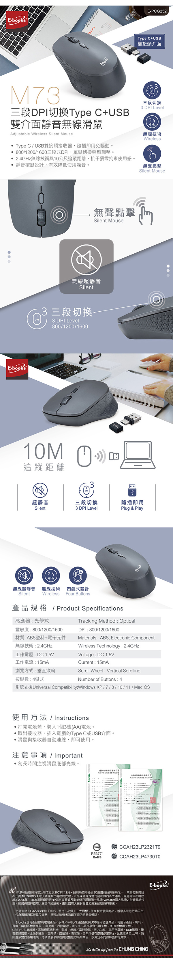 .Type C / USB雙接頭接收器,隨插即用免驅動。