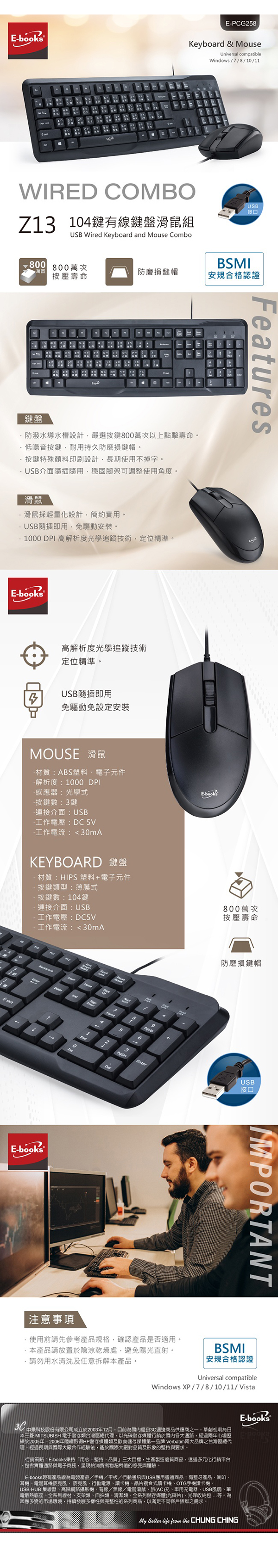 E-books Z13 104鍵有線鍵盤滑鼠組