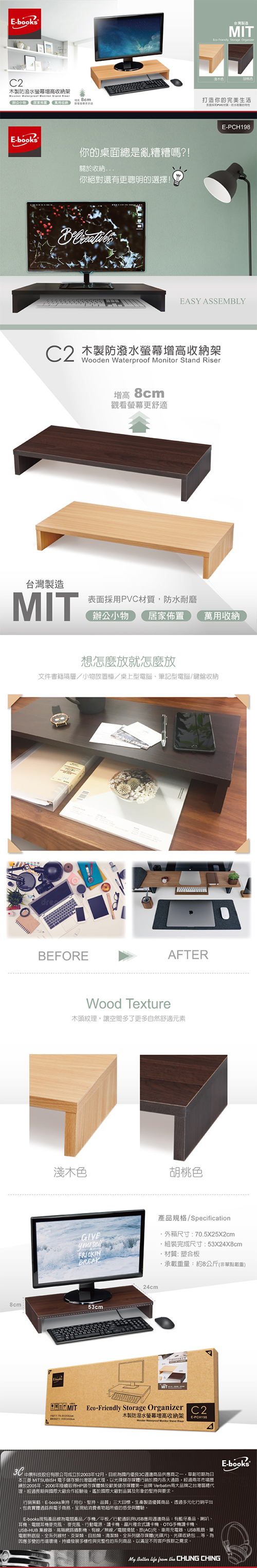 E-books C2 木製防潑水螢幕增高收納架