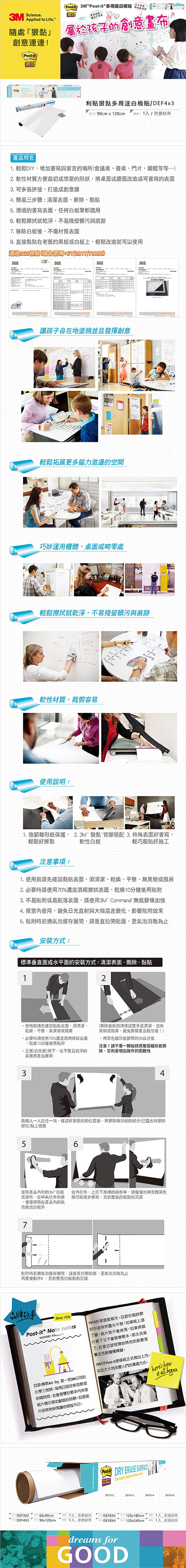- 適用於垂直或水平表面,如:油漆的牆面、鋼質、玻璃與木材表面,現有的白板或黑板。
