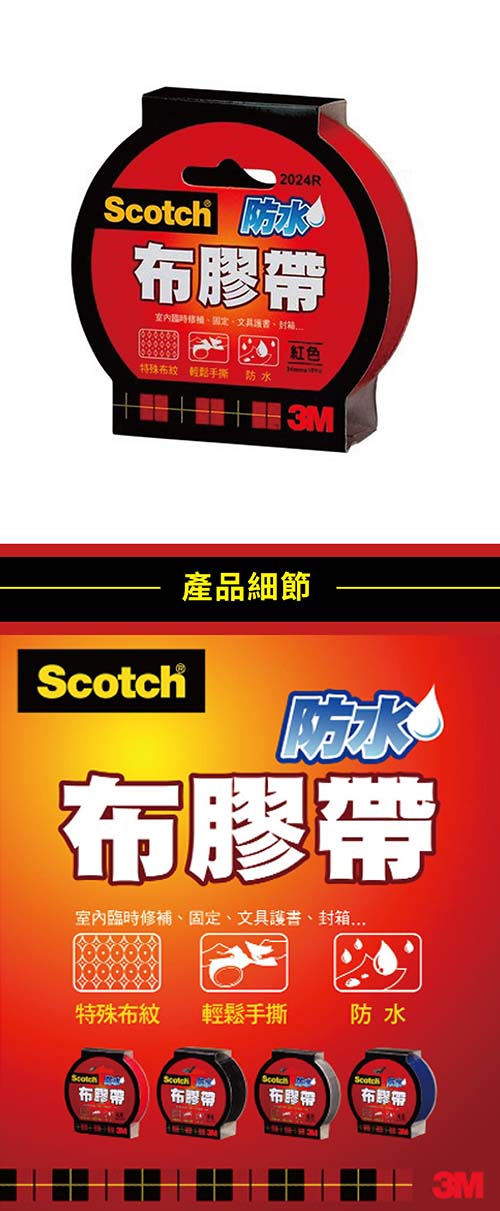 3M 思高牌 Scotch 2024R 紅色強力防水布膠帶 24mmx15Y