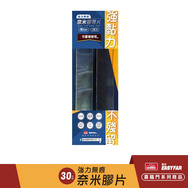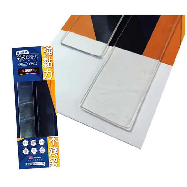 規格:30mmx20cm 厚3mm貨號:31320包裝:2片 / 包材質:奈米膠顏色:透明使用方法:先裁切欲黏貼面之適當大小,將被黏貼面擦拭乾淨,清除汙漬與灰塵,進行按壓貼合。產品特色:雙面黏貼,可水洗後重複使用、強黏、透明度高、承重力持久、撕下後不留殘膠產地:台灣