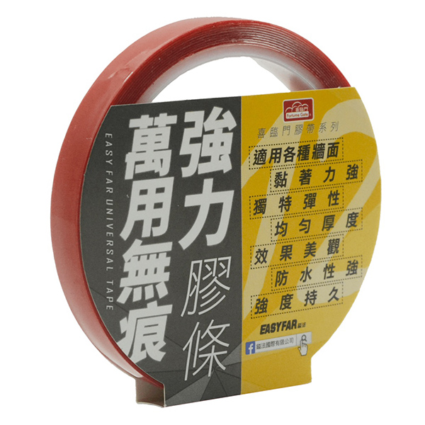 規格:※ 12mm x 3M 厚0.05cm / 個另有※ 20mm x 3M 厚0.05cm / 個※ 30mm x 3M 厚0.05cm / 個包裝:單一包裝材質:壓克力膠水顏色:透明使用方法:先將被黏貼面擦拭乾淨,清除汙漬與灰塵,進行按壓貼合。產品特色:防水、強黏、持久、延展性佳、無痕美觀產地:台灣
