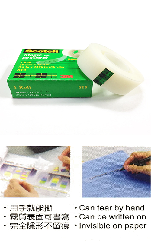 產品介紹白色霧面的外觀,有絕佳的耐黃化特性易撕除在紙張上呈現透明無色黏貼後膠帶隱形看不見,經影印後不留膠帶痕跡。膠帶表面可書寫,方便標示。撕拉平順,不易扭曲,手撕即可。黏性持久,長時間黏貼,不脫膠也不溢膠。