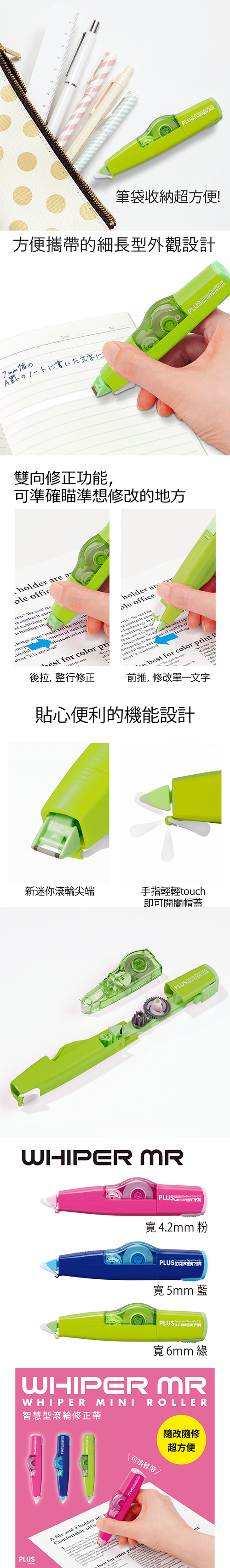 1.筆端超輕滾輪設計,握筆時角度傾斜修正帶也能和紙面貼緊,不會有浮字剝落問題。