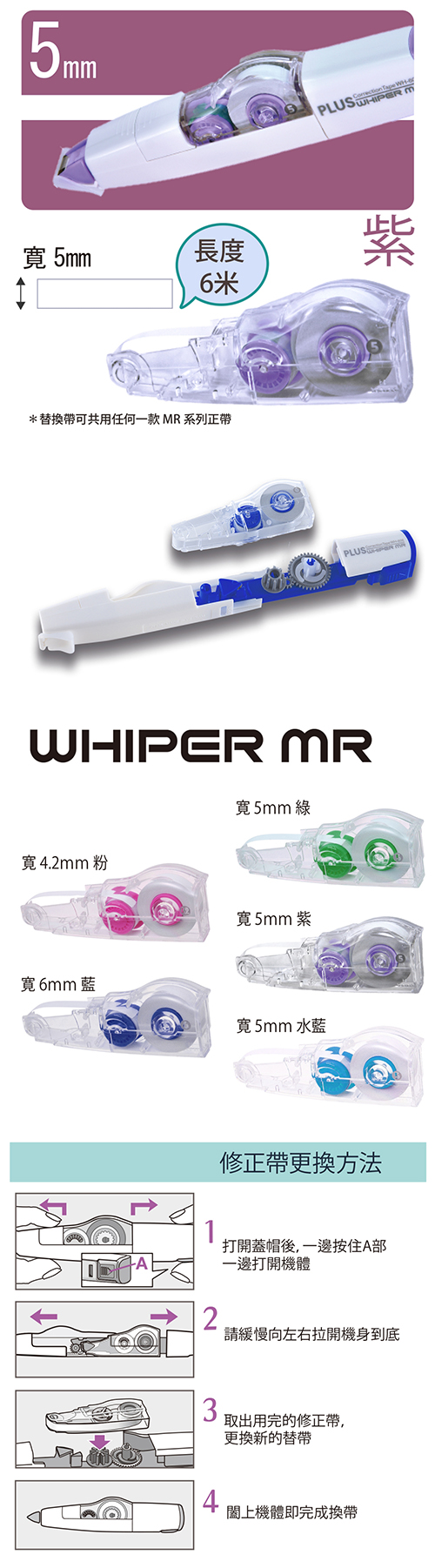 PLUS 普樂士 44-231 智慧型滾輪 修正帶/立可帶 補充內帶 5mm 紫 WH-605R