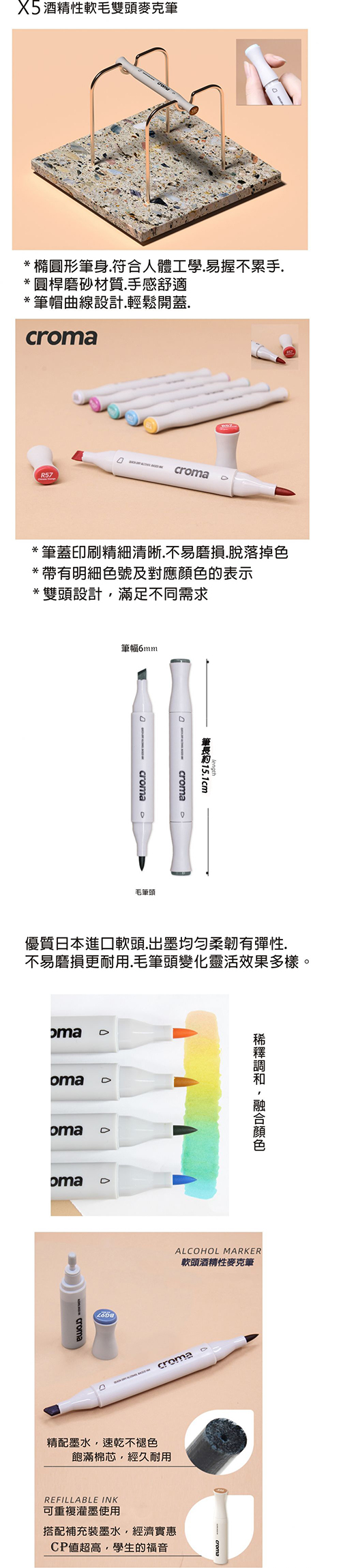 Croma X5 軟毛雙頭酒精性嘜克筆/麥克筆24色(胚布束口袋)4811-24