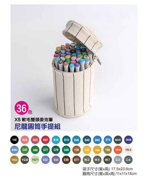 Croma X5 軟毛雙頭酒精性嘜克筆/麥克筆48色(尼龍手提組)4811-48