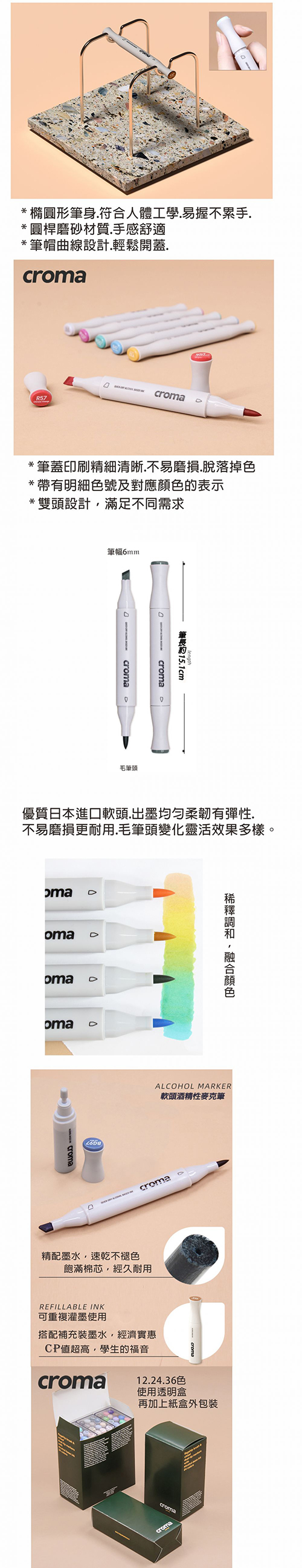 Croma X5 軟毛雙頭酒精性嘜克筆/麥克筆-12色.透明盒4811-012