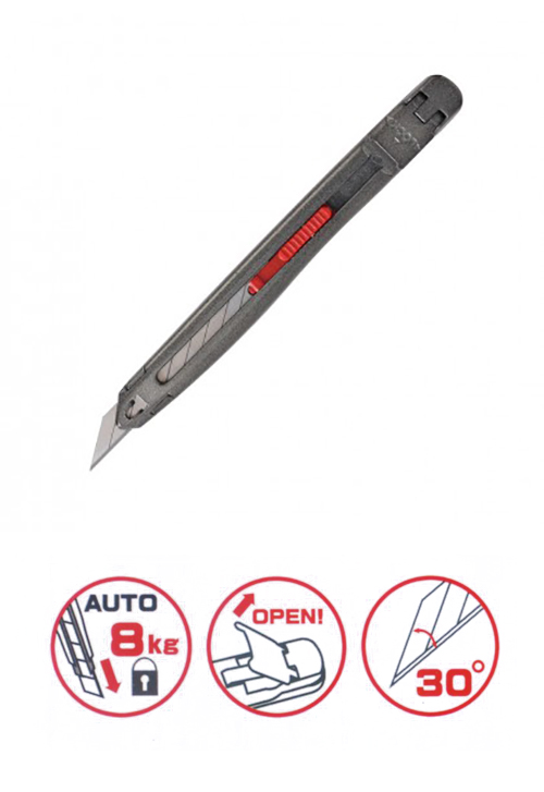 • 日本進口特殊鋼材刀片,鋒利耐久。• 強力鎖定,可承受高達6公斤的施力。• 採用30度銳角刀片,適合精細作業。• 專利夾持機構,裁斷、雕刻、切削更穩定。
