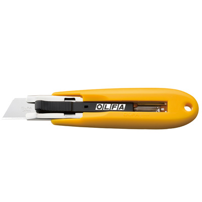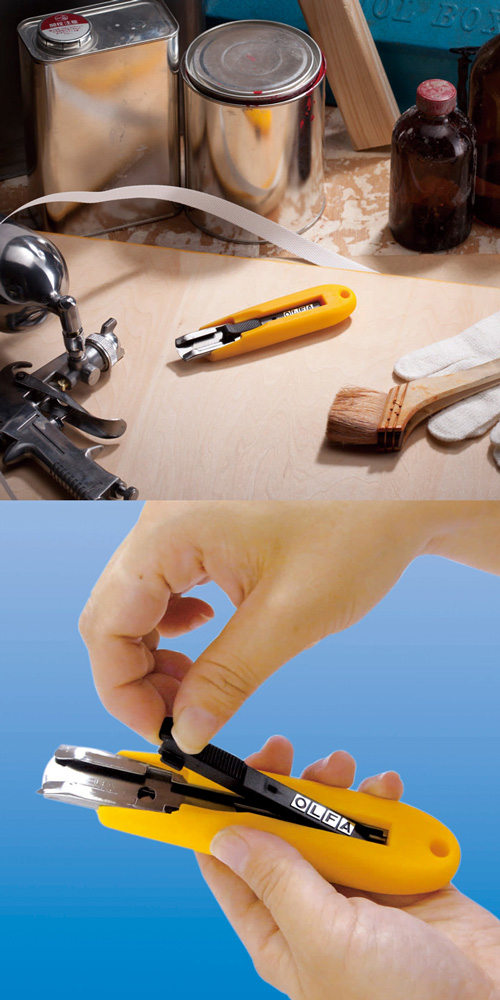 刀片可藉由內建之彈簧自動收回刀柄內之安全工作刀。