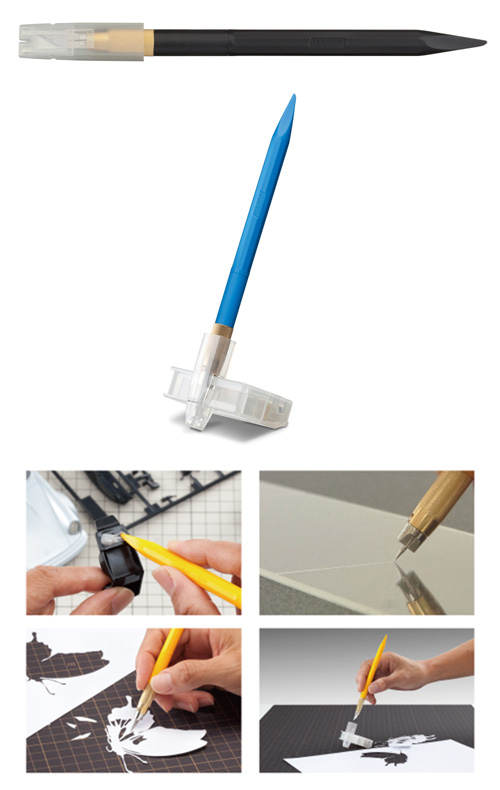 擁有30度角尖形刀片及筆狀之握柄,適用於最精確之切割。日本內銷彩色握柄版本、不含多用途刀片盒。