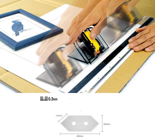 畫框框邊45度斜角專用刀,配上40公分細緻抗滑直尺,使得45度斜角之裁切更為乾淨俐落,絕不滑溜。