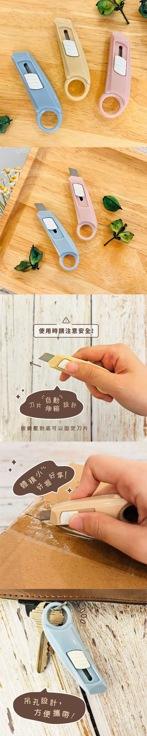7.5*2cm產品特色:✅ 體積小,好握好收納✅ 刀片自動伸縮設計,按鍵推到底可以固定刀片✅ 吊孔設計,更容易攜帶材質:碳鋼、ABS(丙烯腈-丁二烯-苯乙烯共聚物)顏色:藍/粉紅/奶咖⚠️使用刀片時請多加注意安全!⚠️兒童使用本產品時,請家長務必陪同使用!