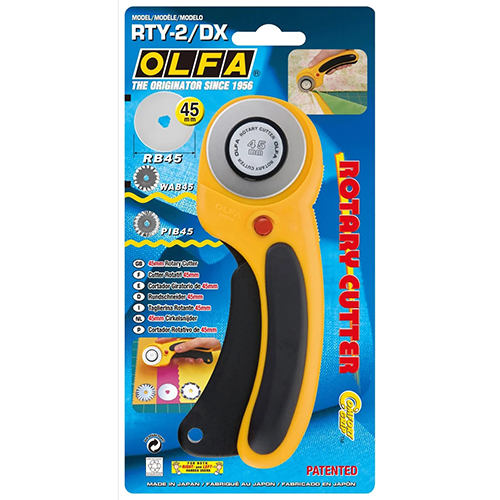 補充刀片: OLFA 45m/m 直徑圓型刀片 RB45-1(單片裝)、RB45-10(10片裝)、RB45H-1、WAB45-1、PIB45-1。