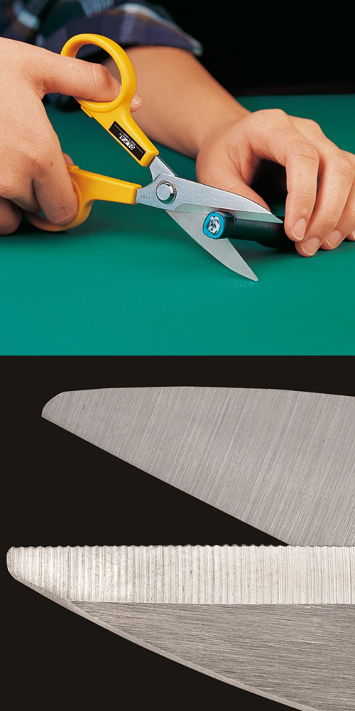 大型實用剪刀、 具備抗滑(防逃布)的不銹鋼鋸齒狀刀刃。是剪紙與剪布的最佳利器。總長:173mm
