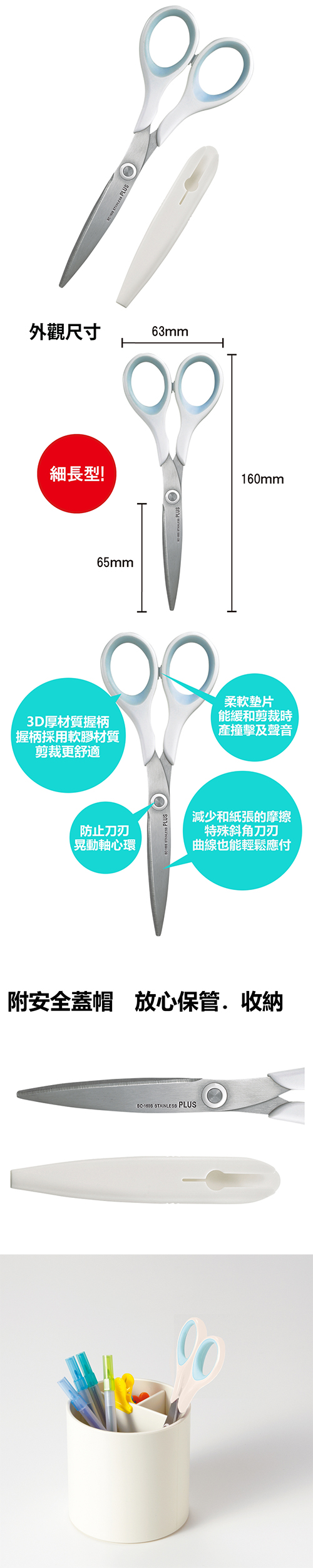 PLUS 普樂士 SC-160S 剪刀 (附蓋) 白 全長160mm 34-301