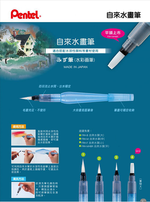 Pentel 飛龍牌 FRH-B 自來水畫筆/水筆/水彩筆 大 圓頭