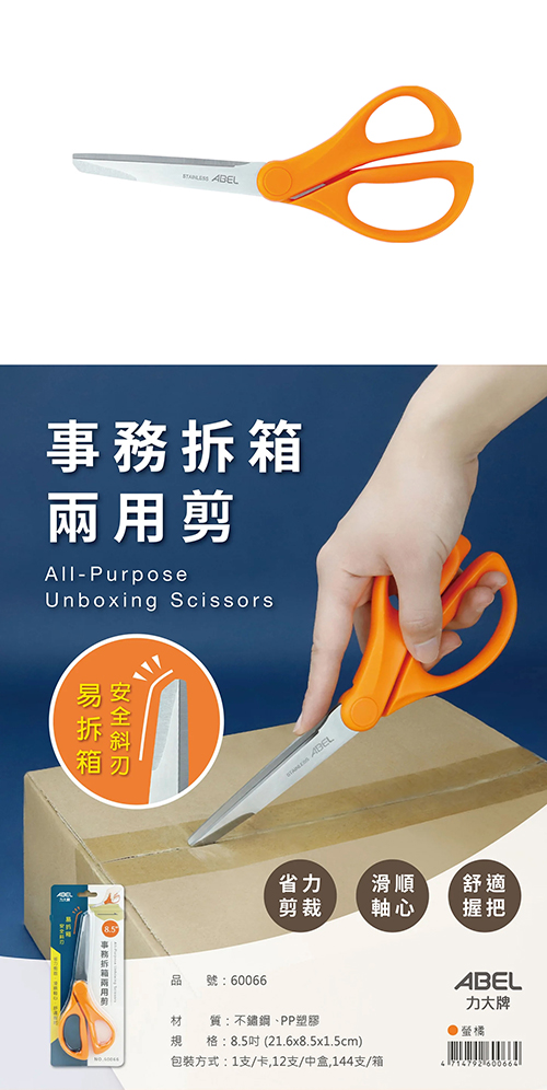ABEL 力大牌 60066 事務拆箱兩用剪刀 8.5吋