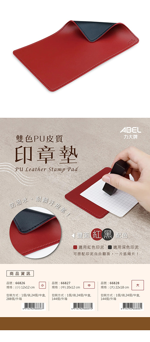 ABEL 力大牌 雙色PU皮質印章墊(中)/印章專用軟墊 20x12x0.2cm NO.66827