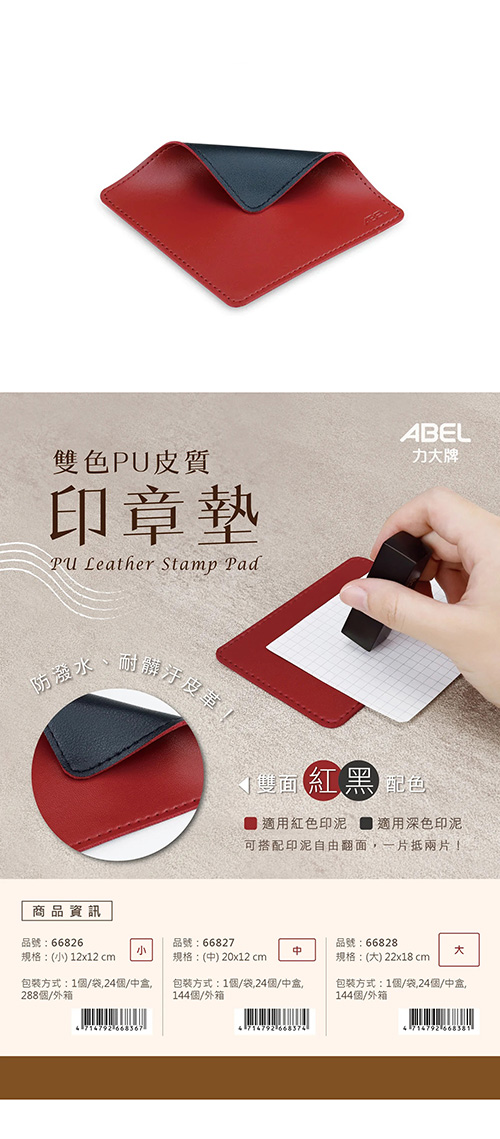 ABEL 力大牌 雙色PU皮質印章墊(小)/印章專用軟墊 12x12x0.2cm NO.66826