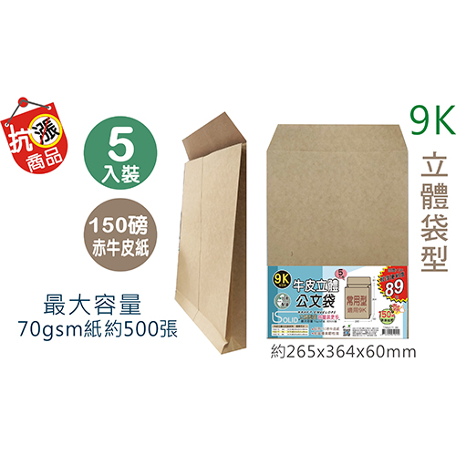 EFFORT 巨匠 常用型/9K 150磅 立體牛皮公文袋/便利袋/牛皮袋(特價) 5入 T7002177