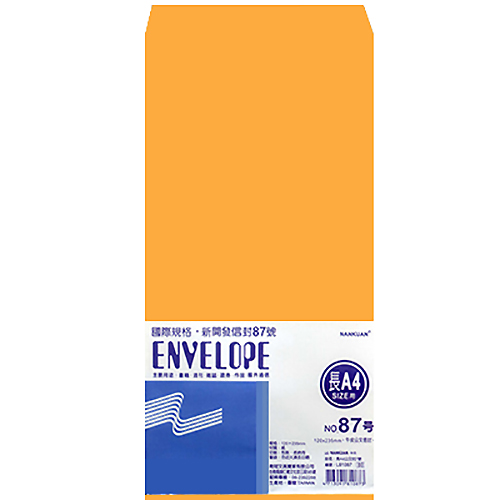 南冠 長A4(非A4尺寸) 黃皮公文袋/信封袋/文件袋 87號 50張入 NO.L81087