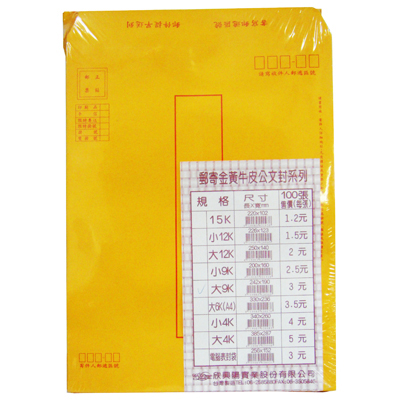大9K黃郵寄公文袋/信封袋 190x242mm不含蓋 100入 V-EU5