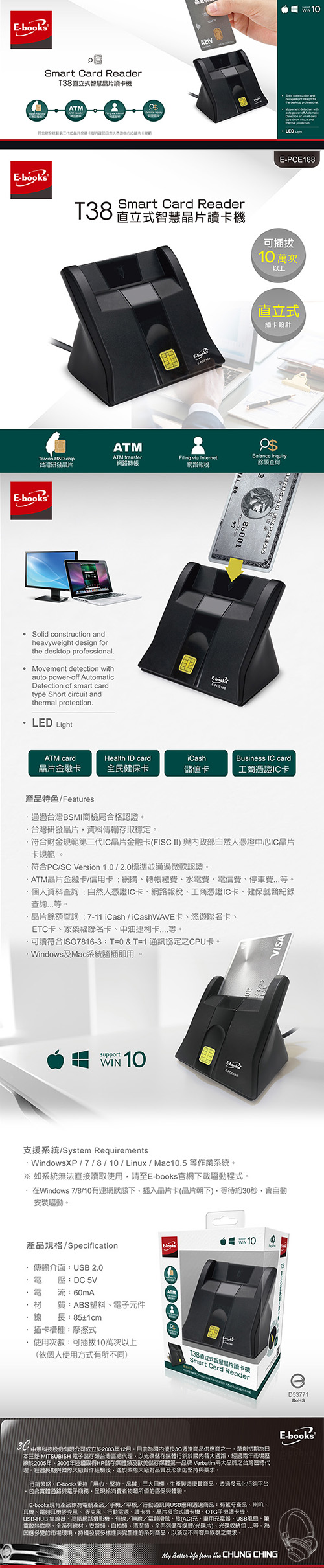 · 符合PC/SC Version 1.0 / 2.0標準並通過微軟認證。