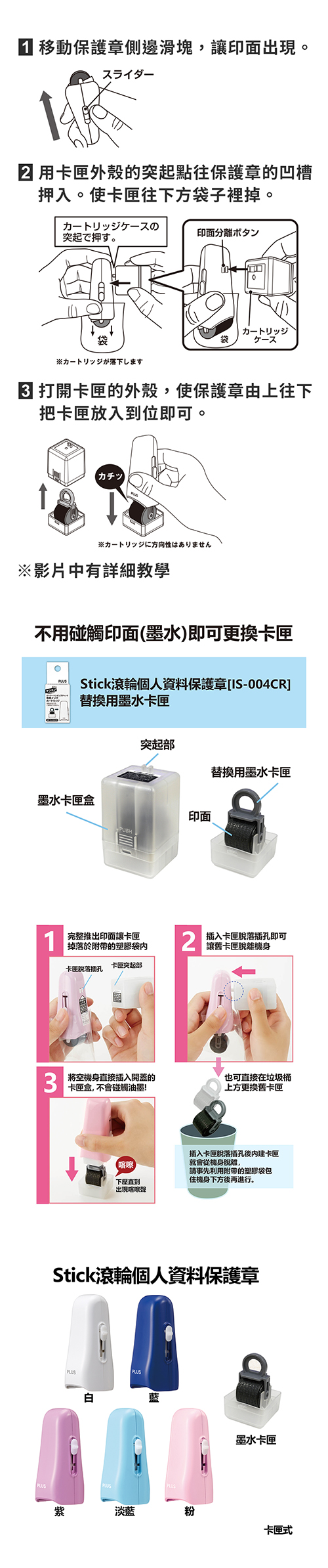 PLUS 普樂士 IS-550CM Stick滾輪個人資料保護章專用墨水卡匣 39-188 NO.IS-004CR