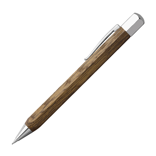 然椰木壓製成筆桿,旋式自動鉛筆更顯高貴、旋轉筆帽即可轉出