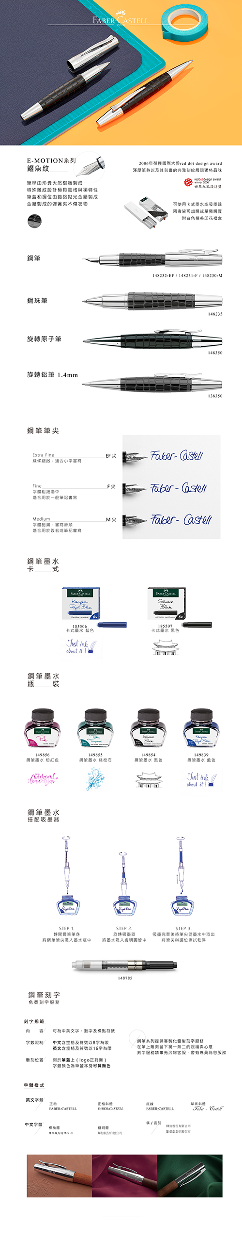 Faber-Castell 輝柏 E-MOTION 天然樹脂鱷魚紋鋼筆 黑色(M) NO.148230