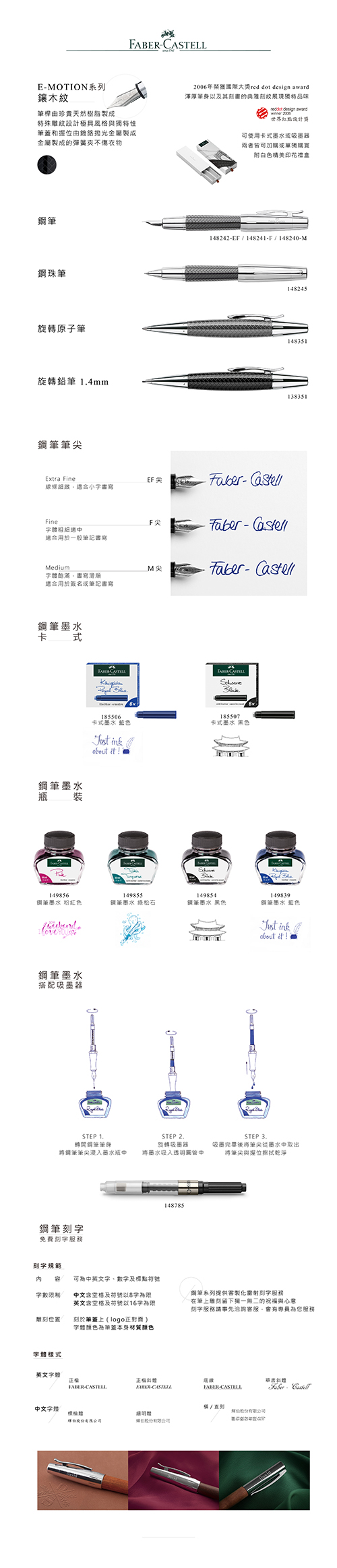 德國原裝鋼筆系列,筆桿由黑色高級樹脂製成,筆帽、筆頭為