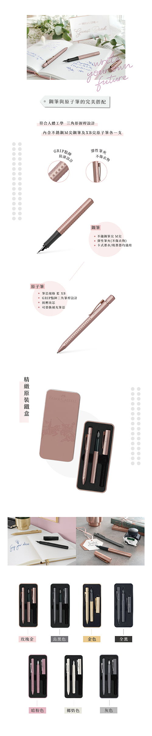 Faber-Castell 輝柏 好點子握得住玫瑰金鋼筆原子筆套組 NO.201525