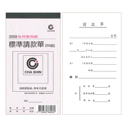 CHA SHIN 加新 2059 非碳48K二聯請款單 50入 95×178mm