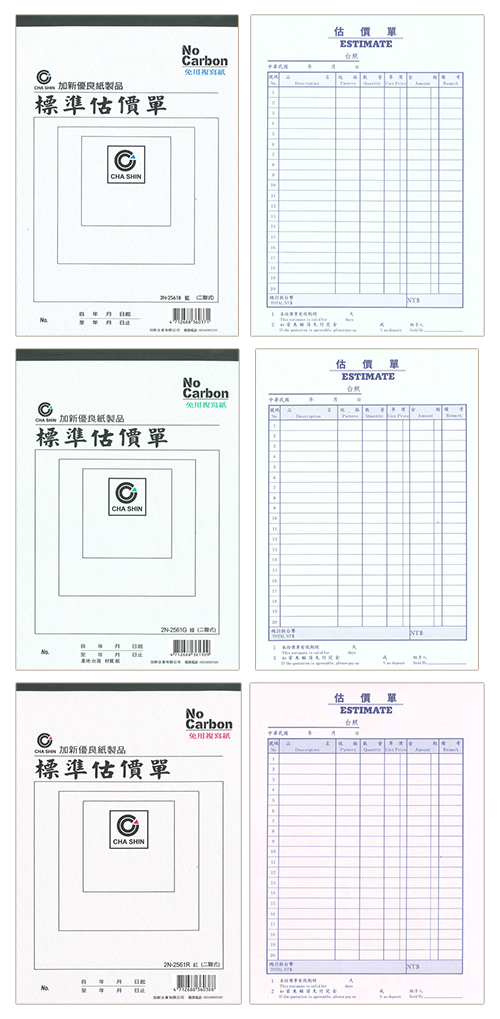 CHA SHIN 加新 2N2561 非碳16K二聯估價單 188×270mm